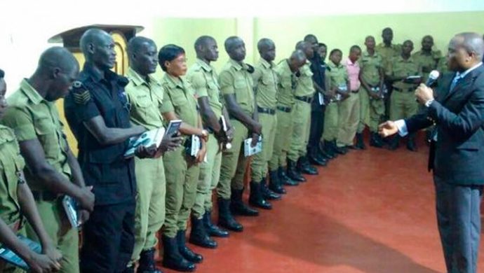 Un grupo de 4.800 policías de la Escuela de Capacitación Policial en Kabalye, distrito de Masindi, escuchó el viernes pasado la Palabra de Dios a través del pastor Samuel Kasigwa, del Ministerio de Evangelismo de Uganda.
